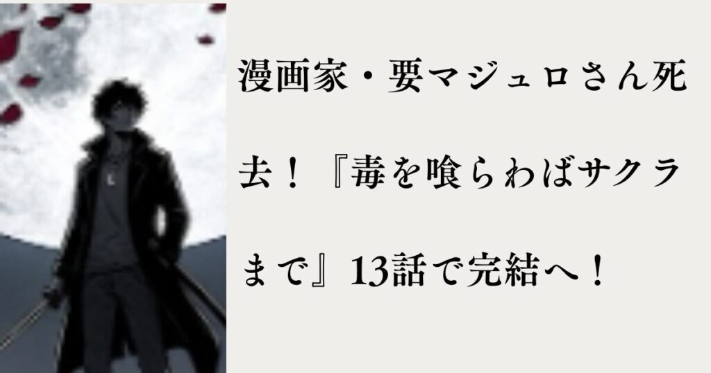 漫画家・要マジュロさん死去!『毒を喰らわばサクラまで』13話で完結へ!