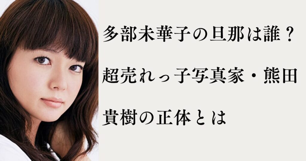多部未華子さんが2019年10月に結婚を発表したお相手は、写真家の熊田貴樹(くまだ たかき)さんです。 一般的にはあまり馴染みのない名前かもしれませんが、広告業界やファッション業界では知らない人がいないほどの有名カメラマン。 著名な写真家である田... -