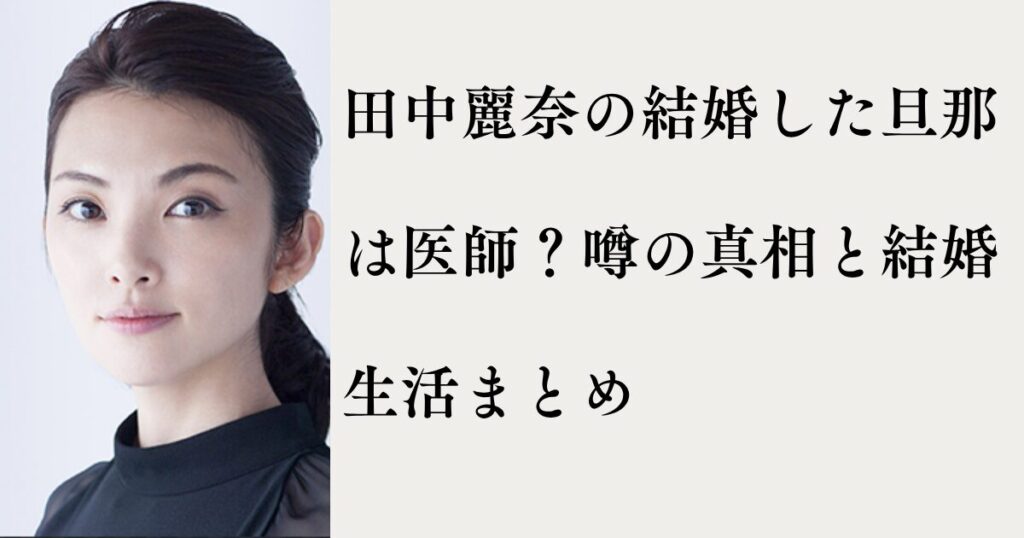 かつて「なっちゃん」のCMで一世を風靡し、現在は実力派女優として映画やドラマで息の長い活躍を続ける田中麗奈さん。 彼女のプライベートについてはあまり多くを語られない印象がありますが、ネット上では「旦那さんはお医者さんなの?」という噂が絶えま... -