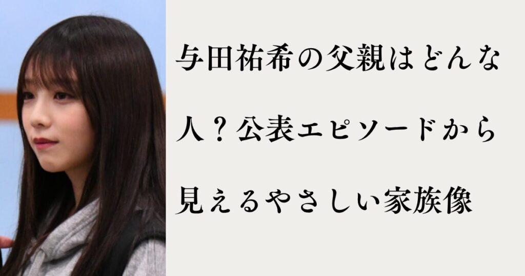 与田祐希さんの父親について気になる人は多いものの、職業や詳しいプロフィールなどは広く公表されているわけではありません。 ですが、インタビューなどで語られた何気ないエピソードをたどっていくと、娘をあたたかく見守るやさしい父親像が少しずつ浮か... -