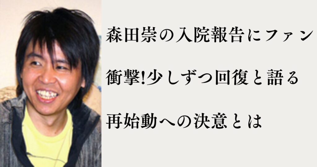 森田崇の入院報告にファン衝撃!「少しずつ回復」と語る再始動への決意とは