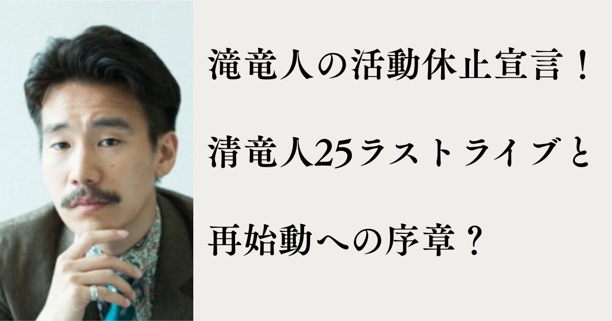シンガー・ソングライターとして独自の世界観を築き上げてきた滝竜人(清竜人)が、2025年末をもって一時的に活動を休止することを発表しました。