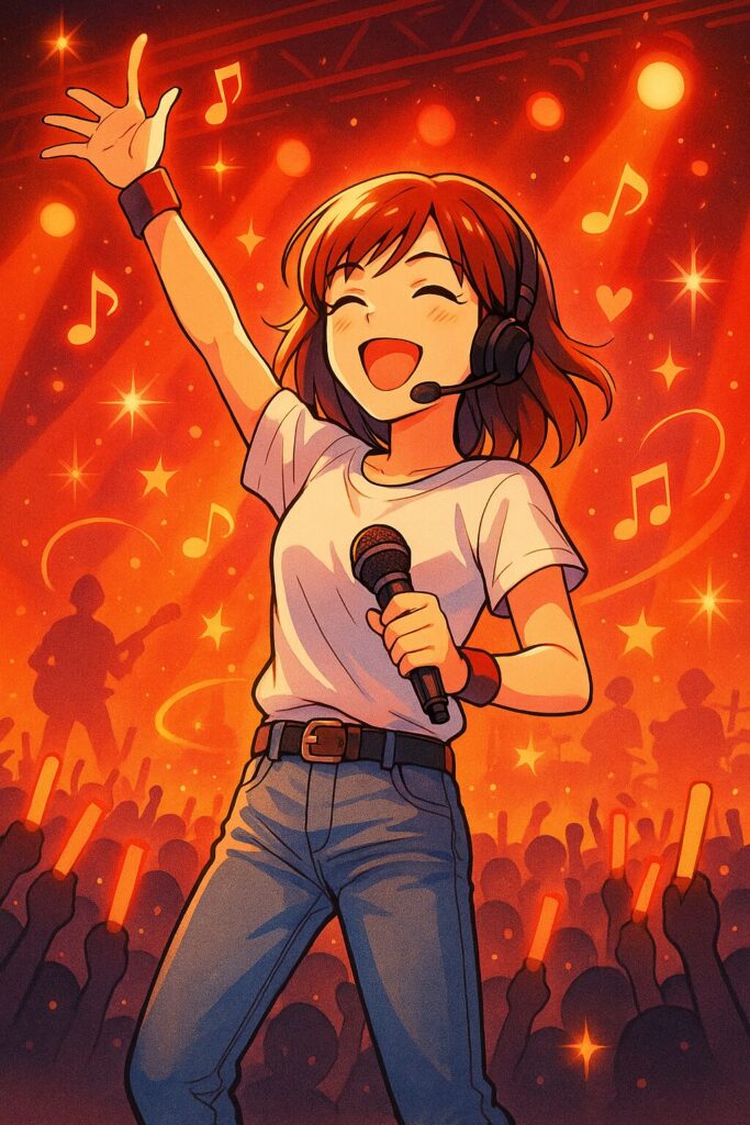 当時からその明るさと声量は抜群で、「いつか歌手になる」と公言していたというエピソードも。