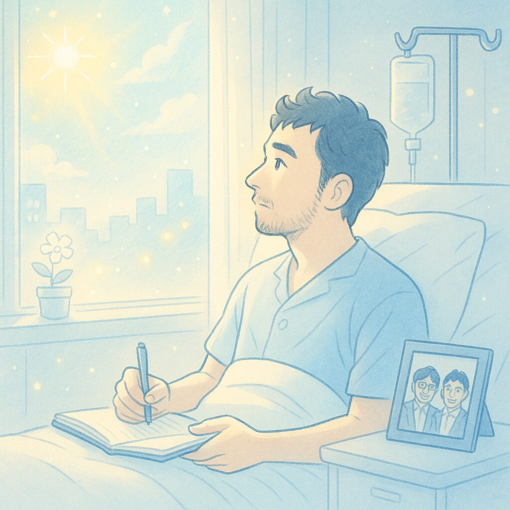 緊急のカテーテル手術を受け、一時は言葉を発することも難しい状態に。