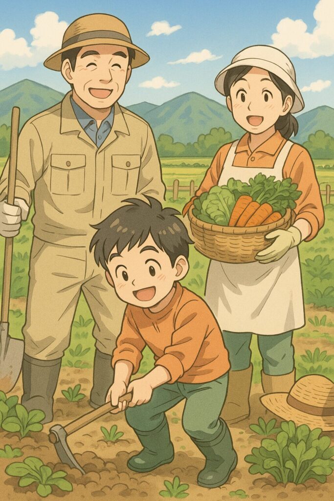 幼い鈴木憲和少年は、家族と一緒に田畑を手伝い、農作業の厳しさと収穫の喜びを肌で感じながら育ちました。
