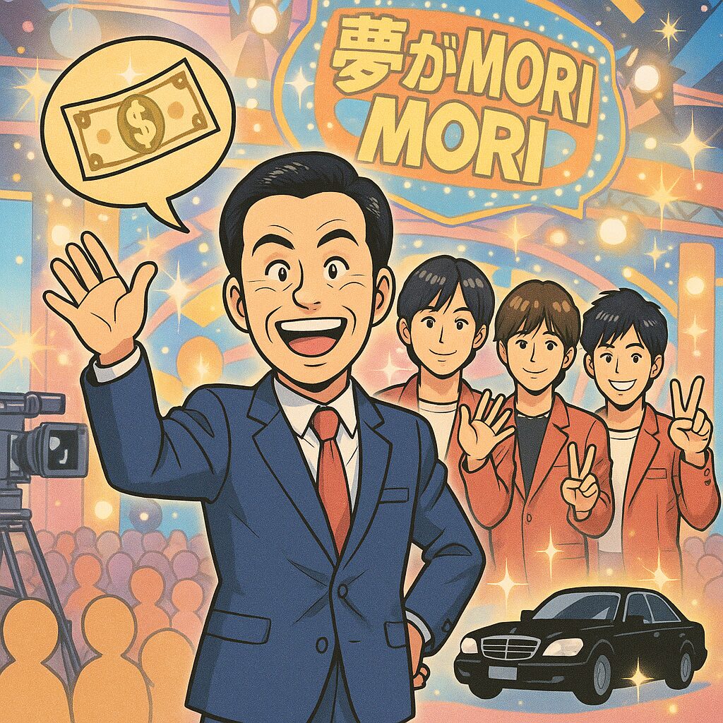 『夢がMORI MORI』では森口博子やSMAPと共にお茶の間を沸かせ、明るく熱いキャラクターでバラエティ界の中心に立っていた。