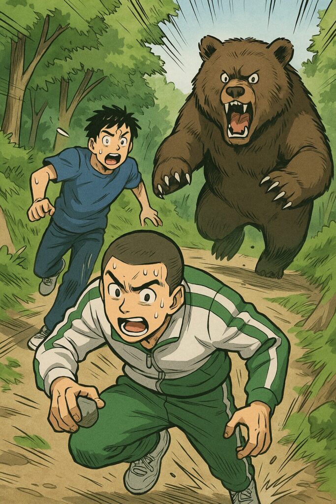 ところがカーブを曲がったその先に——突然“クマ”が現れた。