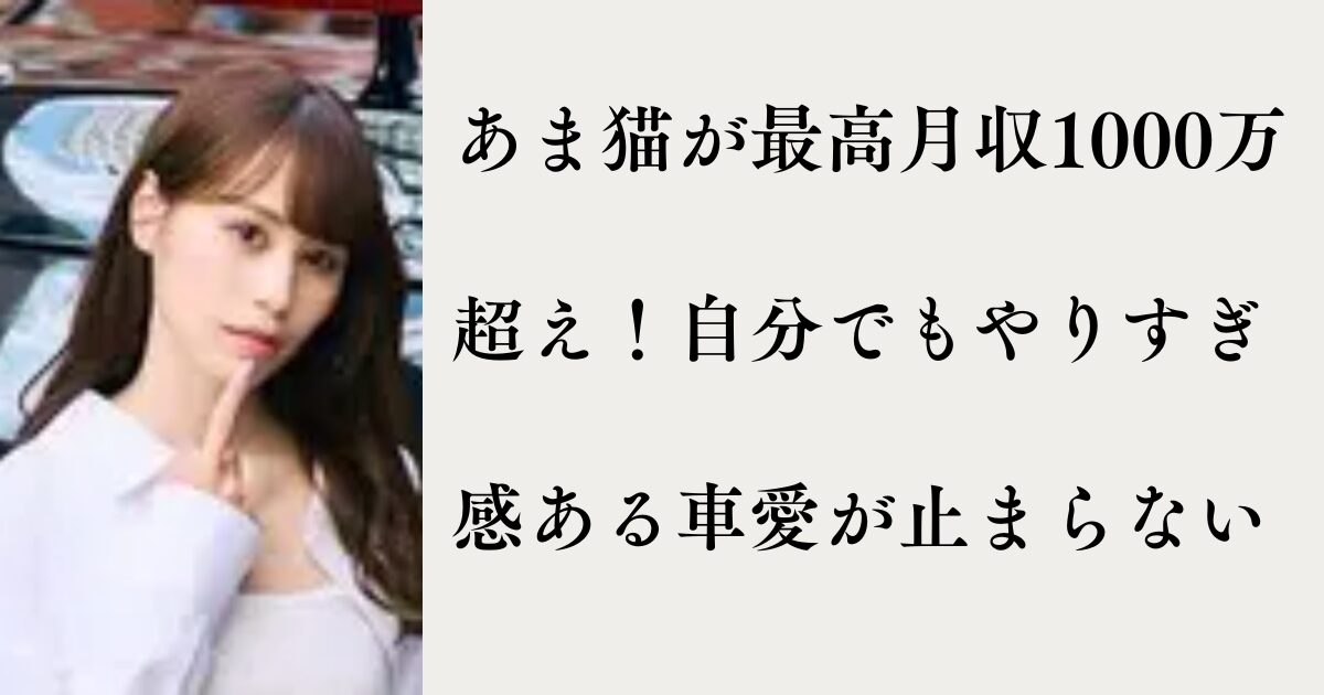 高級車YouTuberとして知られる「あま猫」が、ついにYouTube活動で月収1000万円を突破したことを報告。