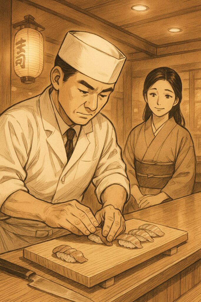 若くして「料理で人を笑顔にしたい」と寿司職人の道へ進み、銀座の寿司店で修業を積む日々。