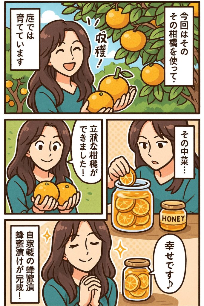 彼女は「口の中、両方のほっぺの奥がキーンとする投稿!柑橘と蜂蜜」とユーモラスに綴りながら、収穫の様子を披露しました。