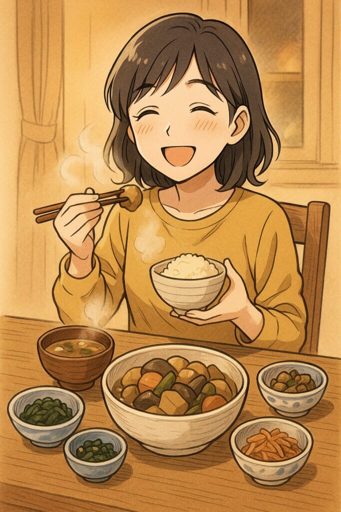 「煮物もしみしみ、出汁もうまうま。『これが最後の味覚かも…』と思いながらお代わりまでしてフル完食」と綴るその言葉には、恐怖や不安よりも“今を生きる”強さが感じられます。