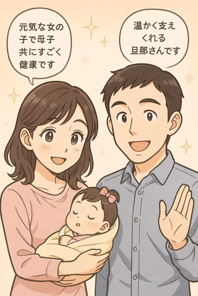 第1子は元気な女の子で、「母子ともに健康」とのこと。