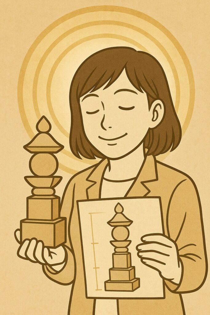 彼女はお墓の本を読み漁り、「五輪塔ならいろんな人が入れる」と知り、自らその形を選びました。