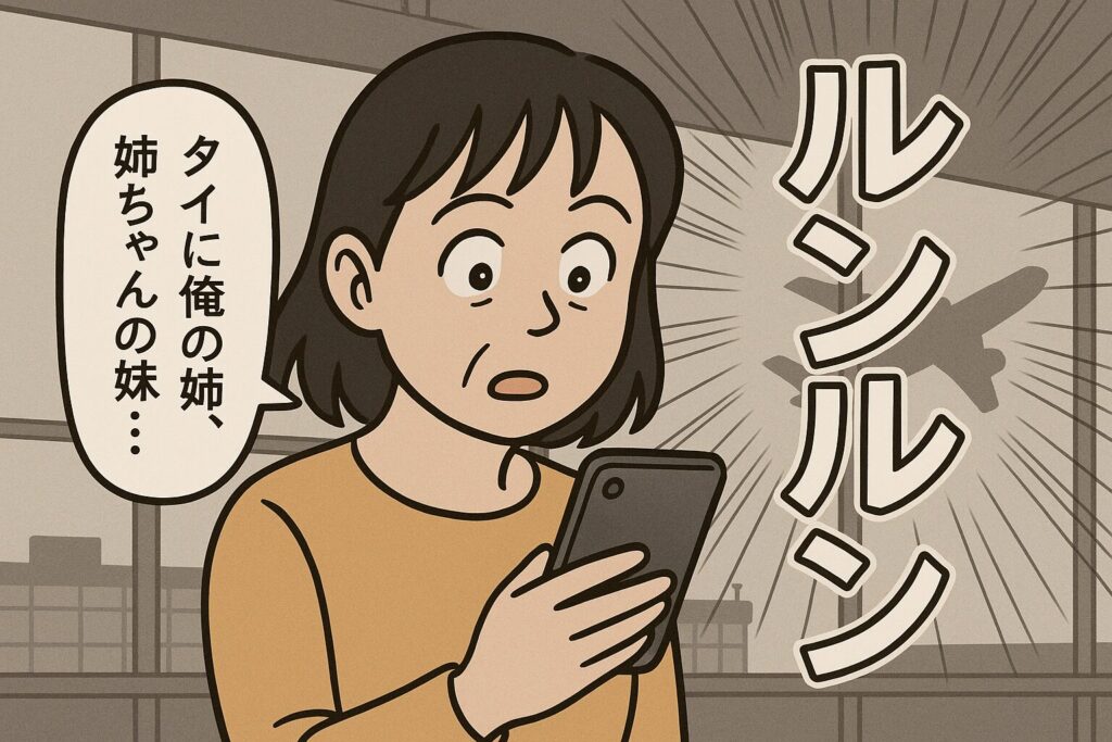 そのメッセージに続いて現れたのは、衝撃の一文――「タイに俺の姉、姉ちゃんの妹。名前はルンルン。」