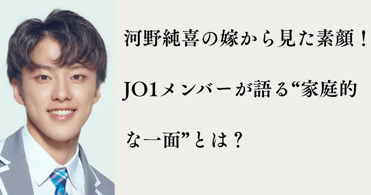今回は、JO1メンバーのエピソードやインタビューをもとに、“嫁から見た河野純喜の素顔”を探ってみました。