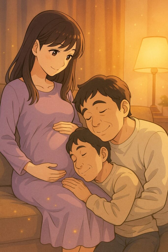 その表情からは、父親になる実感と深い愛情が静かに伝わってきます。