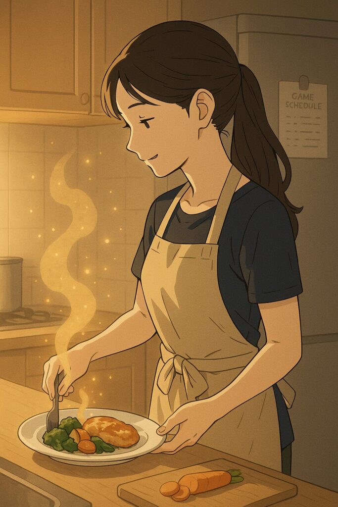 夫のために取得した「アスリートフードマイスター」の資格を活かし、栄養バランスを考えた食事を日々手がけています。