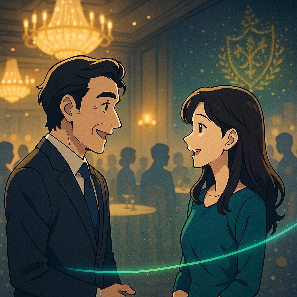 片岡亀蔵さんと中村明美さんの出会いは、青山学院大学の校友会パーティーでした。
