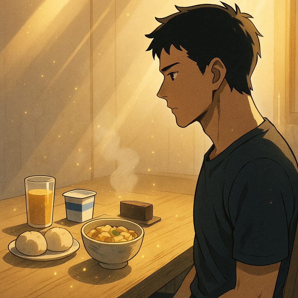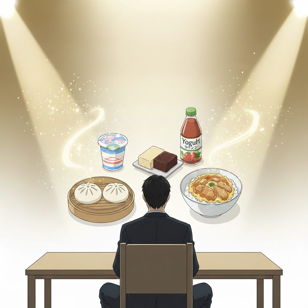 と語り、実際の食事内容は次のような極めてシンプルなメニュー。