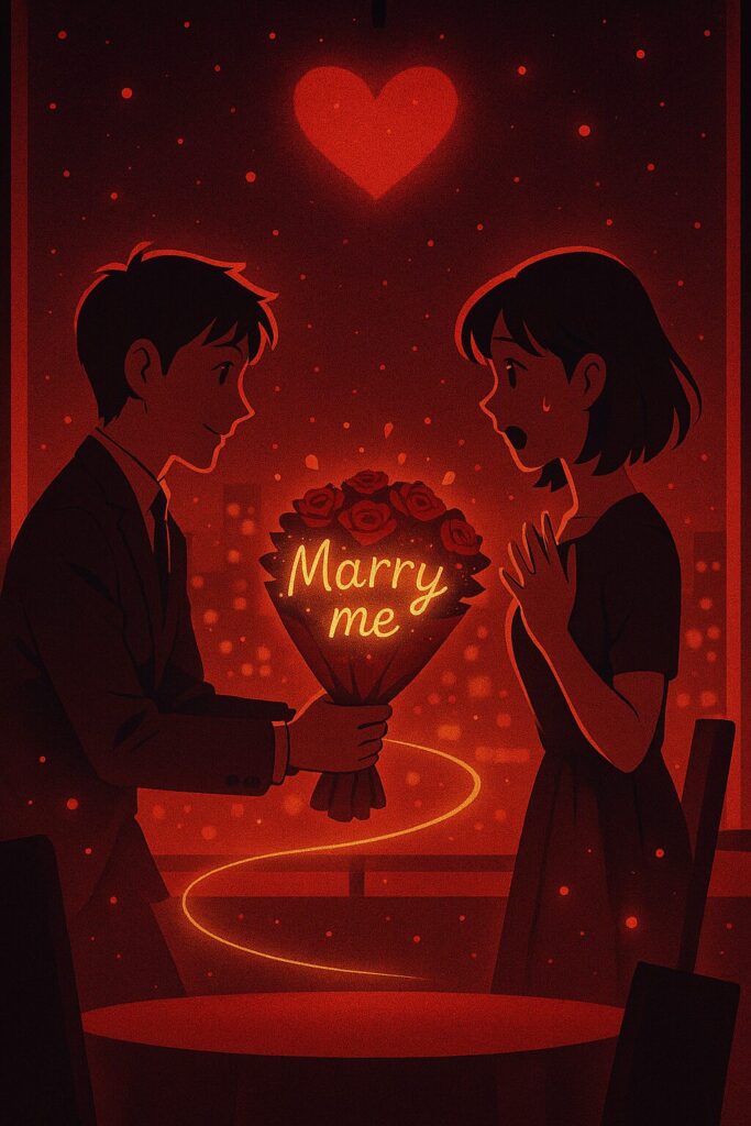 ヒデさんは 真っ赤なバラの花束 を用意し、花びらには 「Marry me」 のメッセージ。