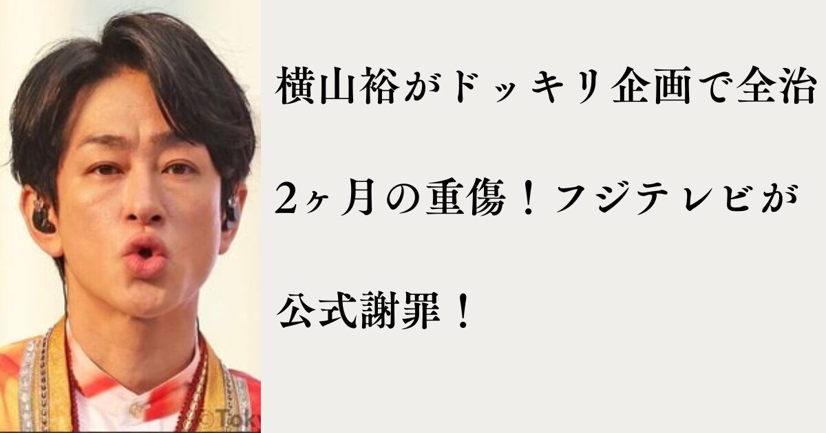 SUPER EIGHTの横山裕さんが、フジテレビの人気バラエティ番組『ドッキリグランプリ(GP)』の収録中に負傷し、全治2ヶ月の重傷を負っていたことが明らかになりました。