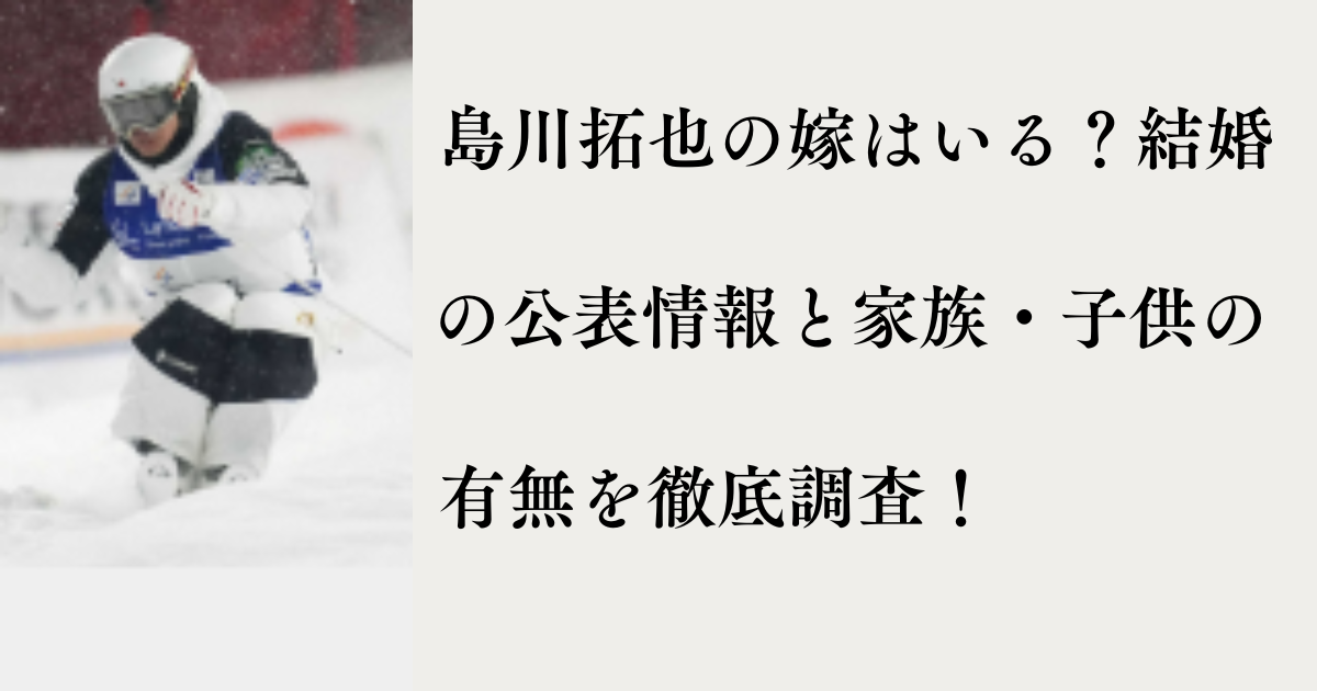 モーグル競技で活躍するスキーヤー・島川拓也さんについて、「結婚しているの?」「嫁(妻)はいる?」「子供や家族構成は?」といったプライベート面が気になる人も多いのではないでしょうか。