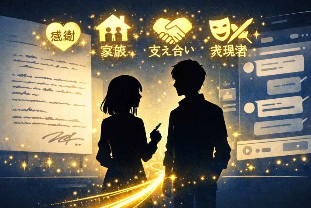 - 連名メッセージは「感謝」「支え合い」「表現者としての精進」が明確