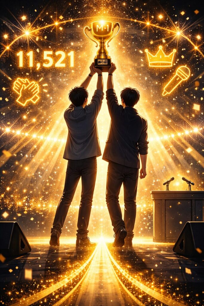 史上最多エントリー(11,521組)の頂点、賞金1000万円、第21代王者──数字だけでも出来事の大きさが分かります。