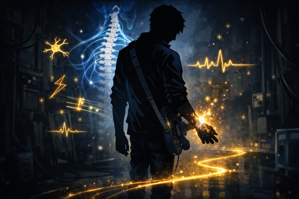 The BONEZのボーカル・ギター JESSE が抱える症状の最大の特徴は、「首からの神経圧迫」による右手の麻痺と持続する痛み です。