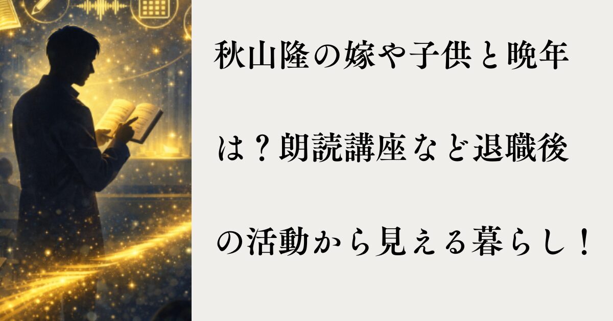 ナレーションの第一線で培った技術が、引退後は“教える”という形で受け渡されていった——その流れ自体が、とても秋山さんらしい終章に思えます。
