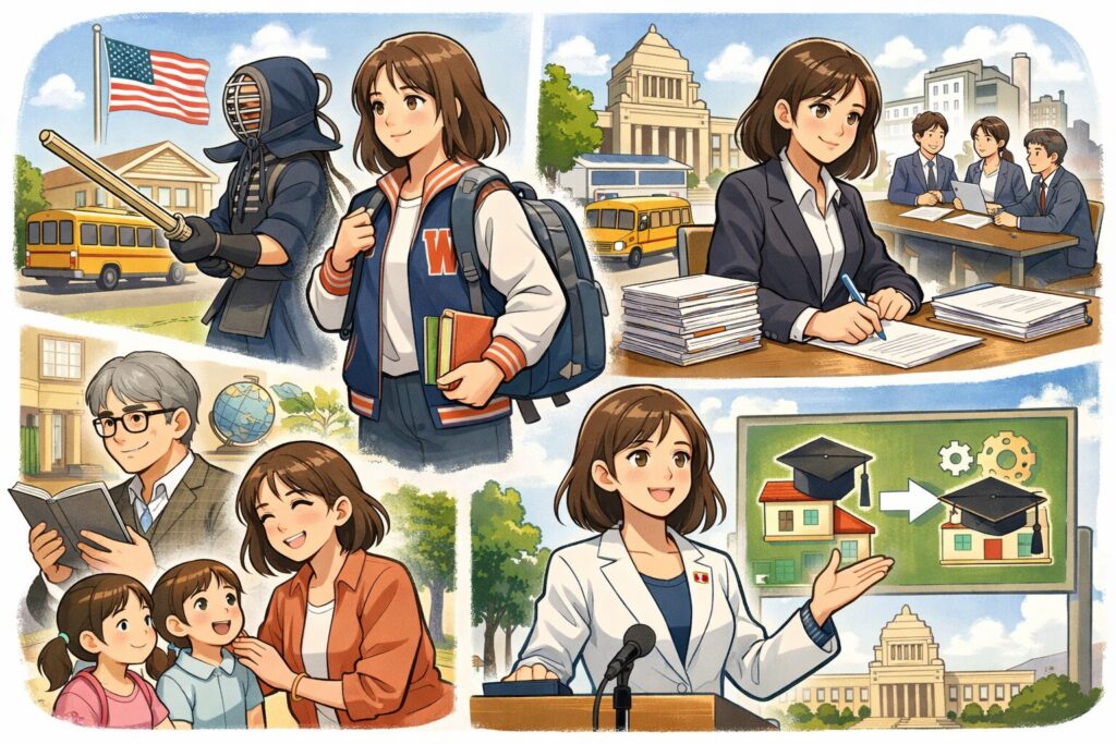 高校留学、行政官としての実務、そして文科政務官という現在の立場までを見ると、“家庭の教育力”がキャリア観・政策観の背景に通っているように見えます。