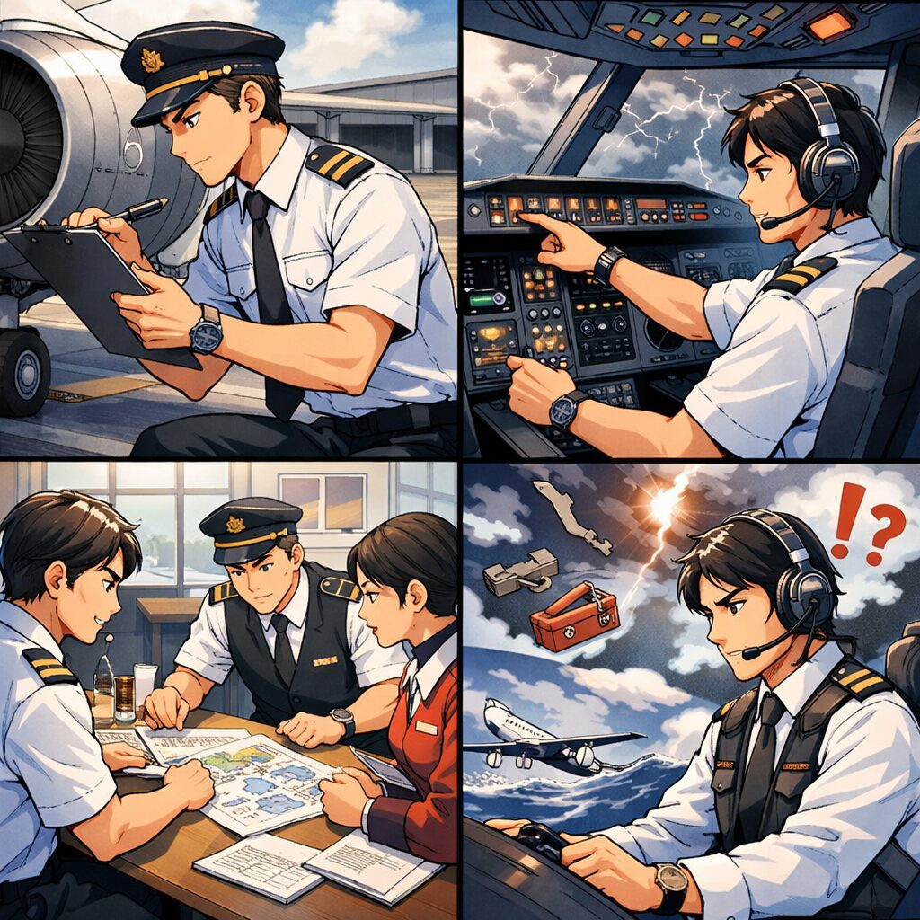 たとえば、機体の状態確認、天候と風の変化、運航計画、乗員間のコミュニケーション、そして“万一”を想定した手順の反復。