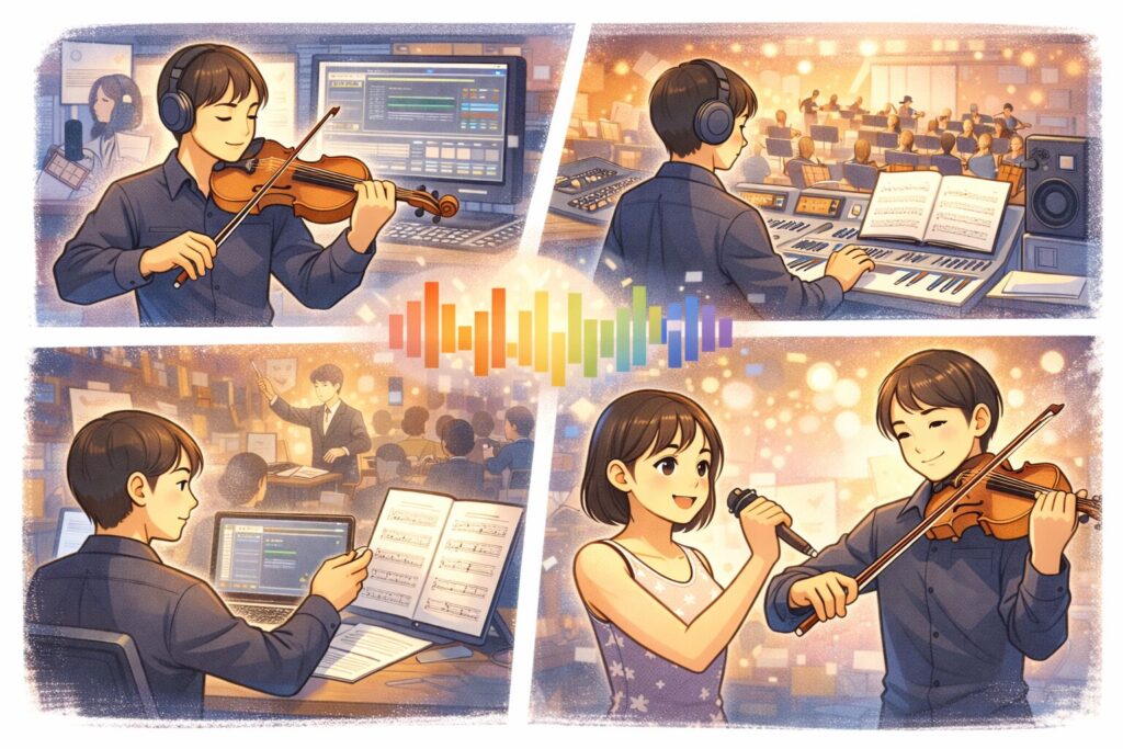 音楽活動と並行して、アート・エンタメ領域でのアプリ企画やコンテンツプロデュース、コンサルティングに関わっている——この二足のわらじが、“ただの音楽家”でも“ただの起業家”でもない独自性になります。