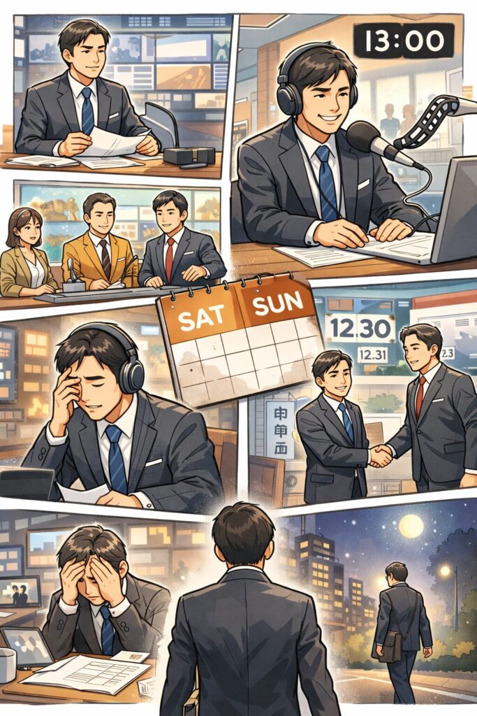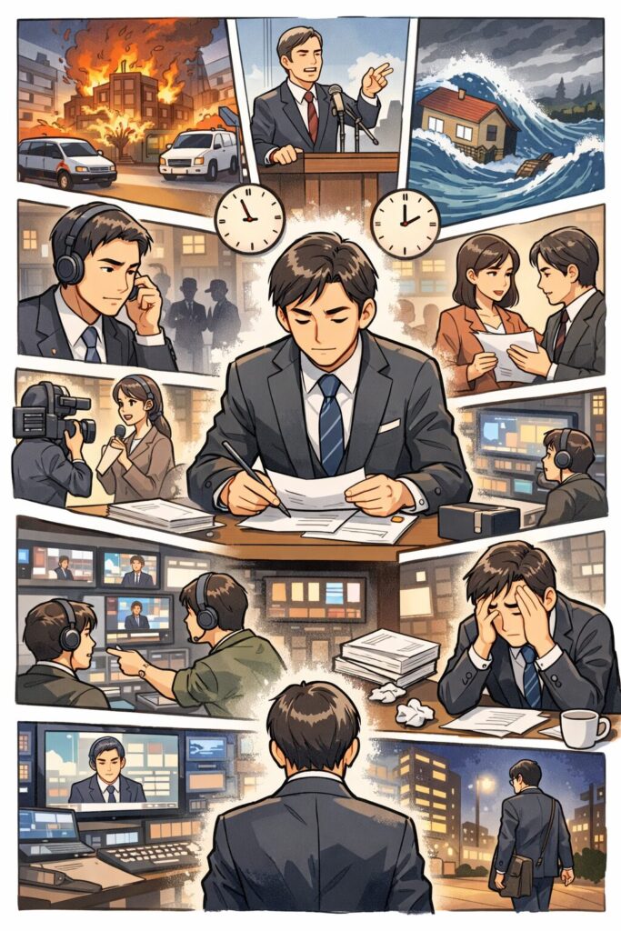 視聴者が見ているのは数時間でも、本人の頭の中は「放送前から放送後まで」ずっと報道モード——これが“休めなさ”の正体です。