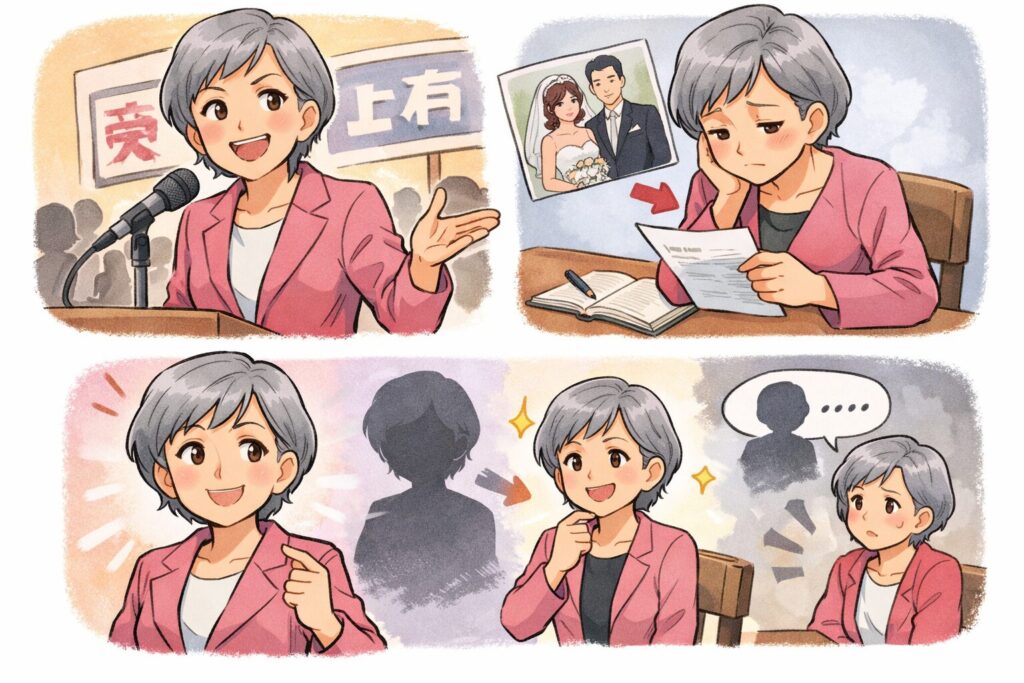 だからこそ、記事の締め方は「家庭の詮索」ではなく、公表されている言葉と経歴に戻すほうが、読者満足と安全性を両立できます。