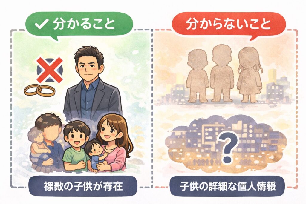 報道に出るのは、あくまで婚姻・離婚の事実関係と、家族がいる/子供がいるといった“枠組み”が中心。