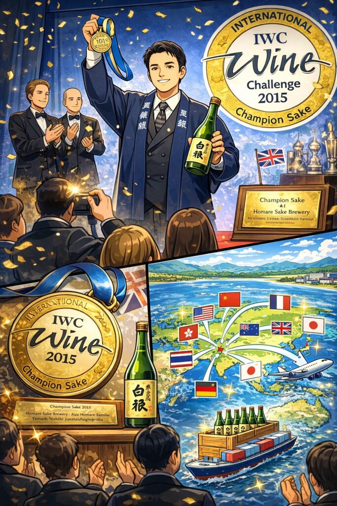 ほまれ酒造は公式ニュースで、IWC2015(インターナショナル・ワイン・チャレンジ)において、自社の「会津ほまれ 播州産山田錦仕込 純米大吟醸酒」が最高位のチャンピオン・サケを受賞したと報告しています(授賞式がロンドン開催だった点も同ページに記載)。