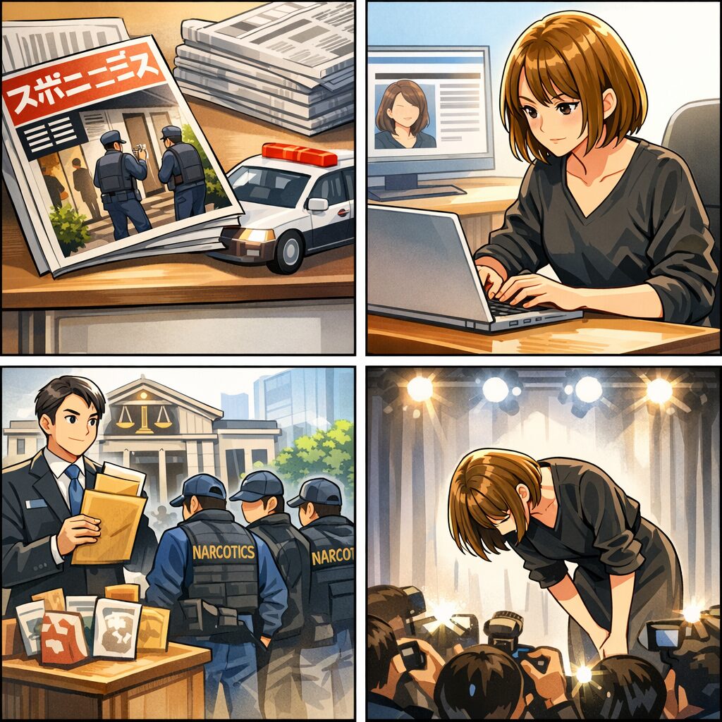 その後、本人が公式サイトで「一部報道にあるように自宅に捜査機関が入ったのは事実」と認め、捜査に協力する観点から発信を控えていたこと、ただ“これまでの協力により一区切りついた”との認識も示しました。