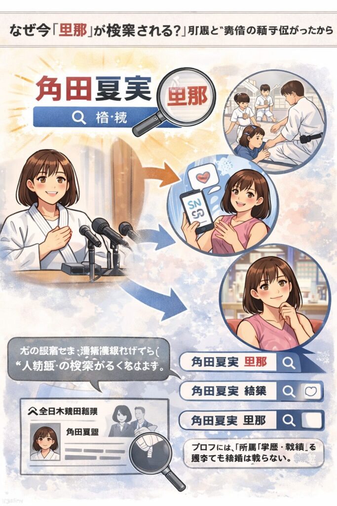 今回、角田さんについては、本人がテレビ番組で“過去に結婚を考えた交際”があったことや、元交際相手が柔道選手だったことを語ったと報じられています。