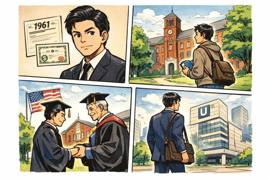 つまり、“国際派”の土台は「名門大学名のインパクト」よりも、若い頃にアメリカで積んだ学びと人脈、そして帰国前の実業経験の連結で形作られた——ここが読みどころになります。