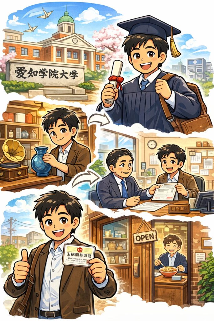 公式プロフィールで確認できる学歴は愛知学院大学卒で、若い頃には参百六拾六日の店の設立など“商いの土台”も見えます。