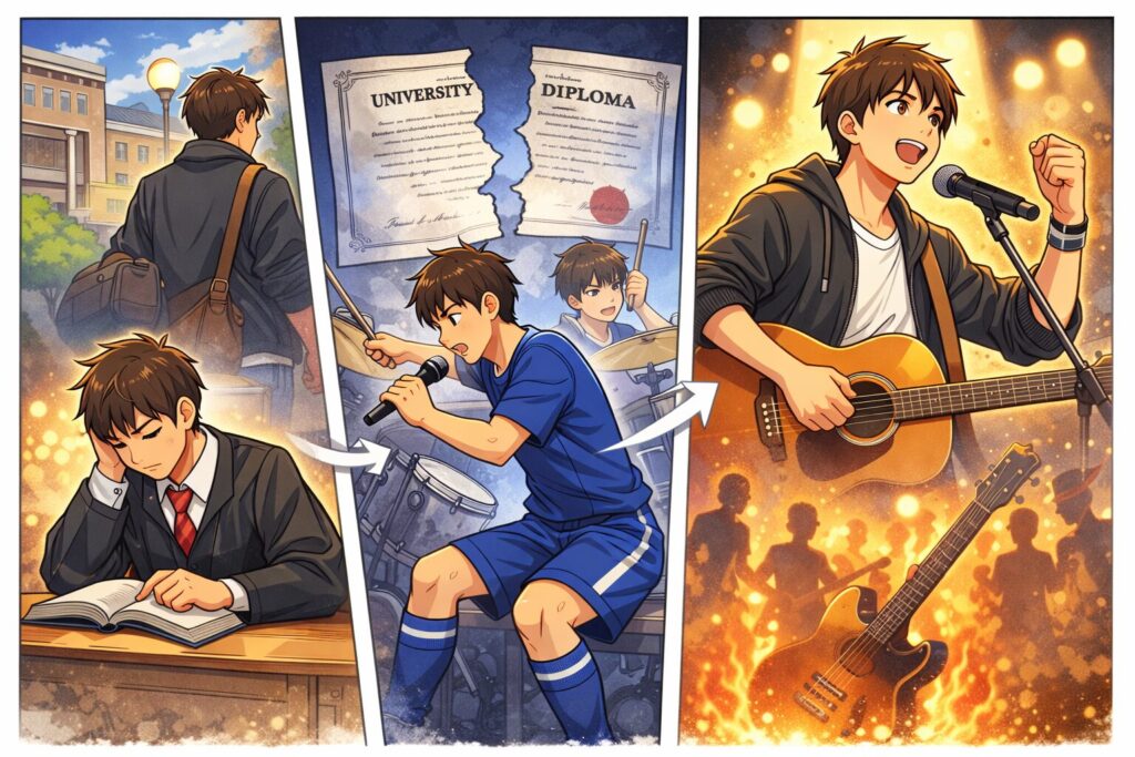 しかし、学業の傍らで養成所に通いながら技量を磨き続け、最終的に音楽に専念するため大学を中退した——この決断は、本人の言葉として残っています。
