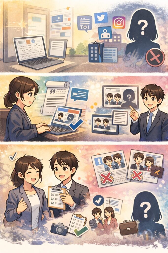 - 書かない:実名・住所圏・勤務先・顔写真など個人特定につながる情報(要請にも反する)