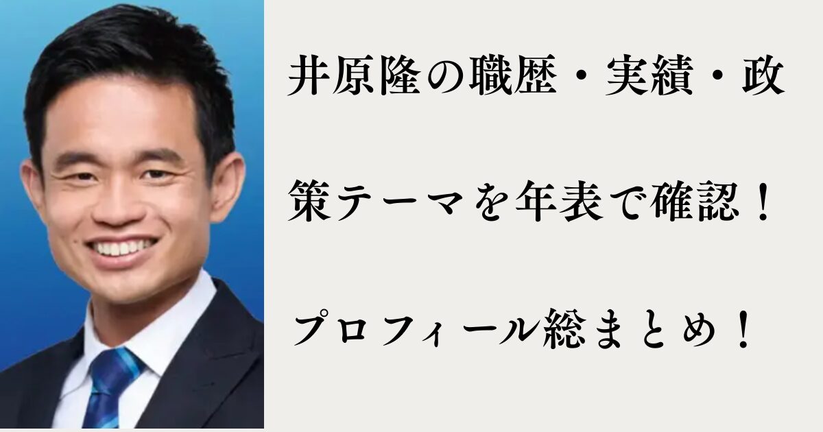 この記事では、憶測や又聞きを避けて、公式プロフィール・実績ページ・政策ページなどの公表情報をもとに、井原隆さんの“プロフィール全体像”を年表+要点で整理します。