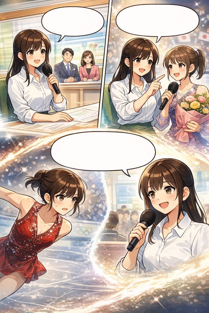 競技の印象は演技のトーンに引っ張られますが、テレビでは表情・話し方・装いが前に出る。