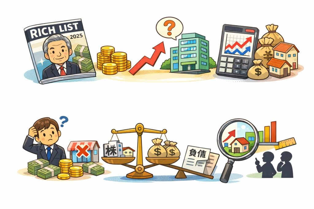 非上場企業のオーナー資産は、株式評価・保有不動産・関連会社の扱い・負債などによって数字が大きく変動します。