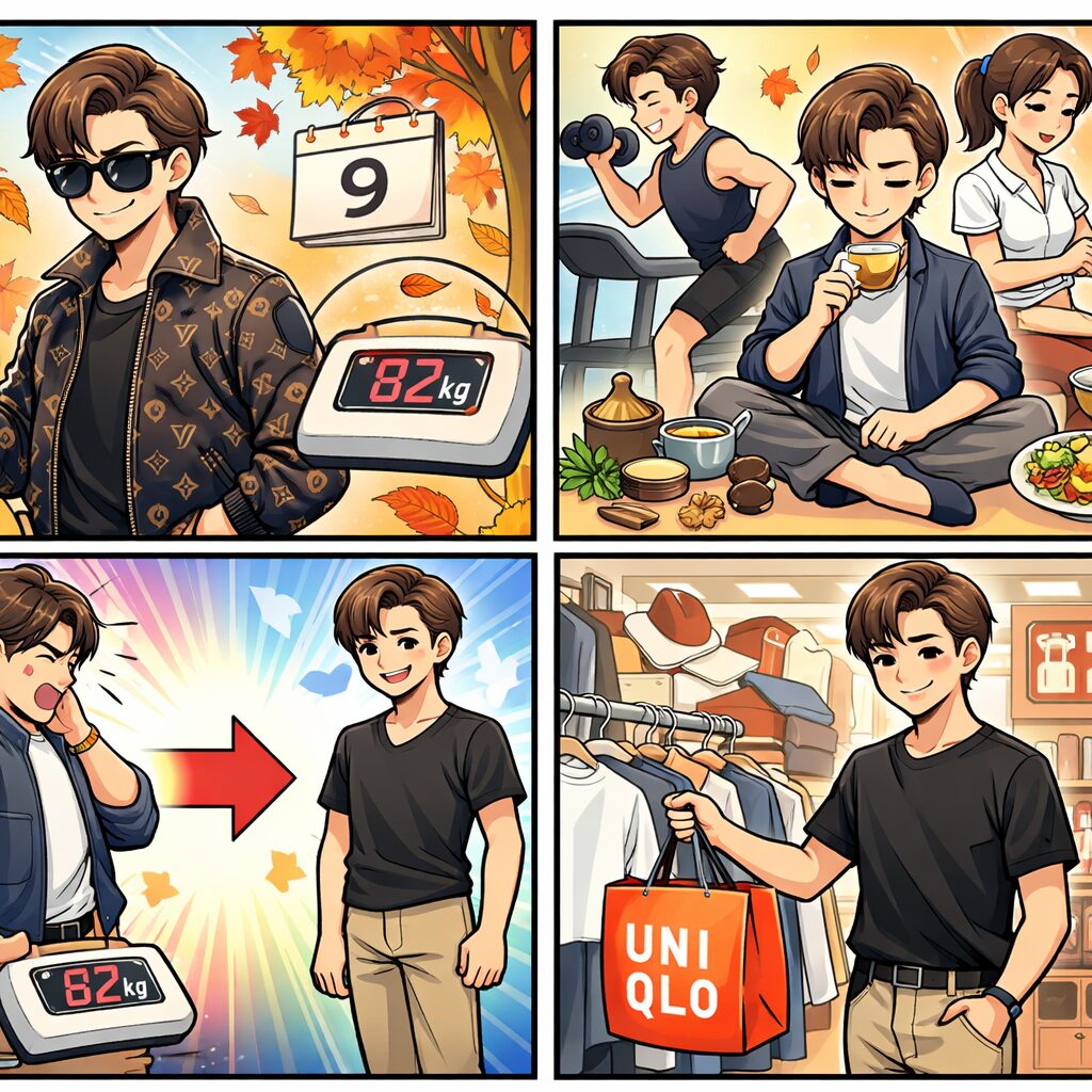 注目ポイントは、減量そのものだけでなく、体型変化を受けて“全身ユニクロ”“あまりお金をかけない”と語ったところ。