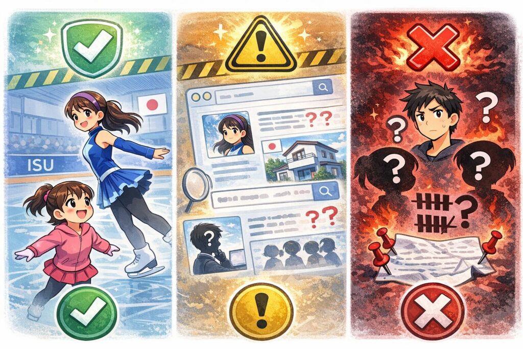 書いてOKなのは、「姉がいて、その影響でスケートを始めた」という“競技の文脈で公になっている話”です。