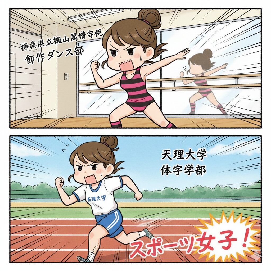 高校時代は創作ダンス部に所属し、レオタード姿で練習に励む毎日だったとか。