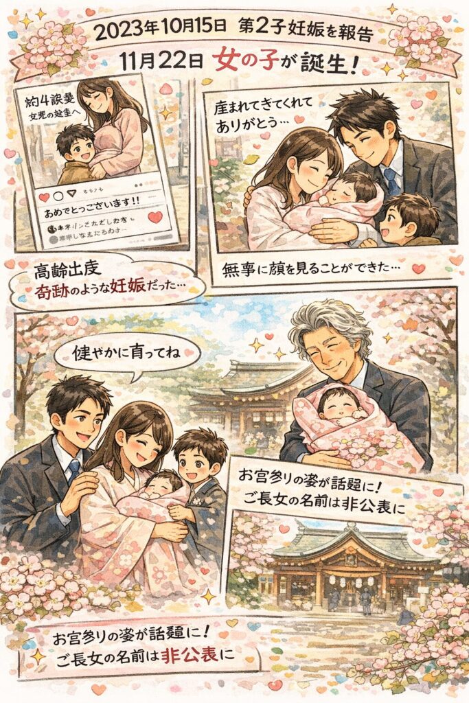 2023年10月15日、第2子の妊娠が公表され、同年11月22日に女児の誕生が報告されました。